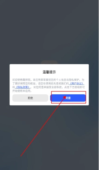 1.打开趣拼图App,点击同意隐私协议