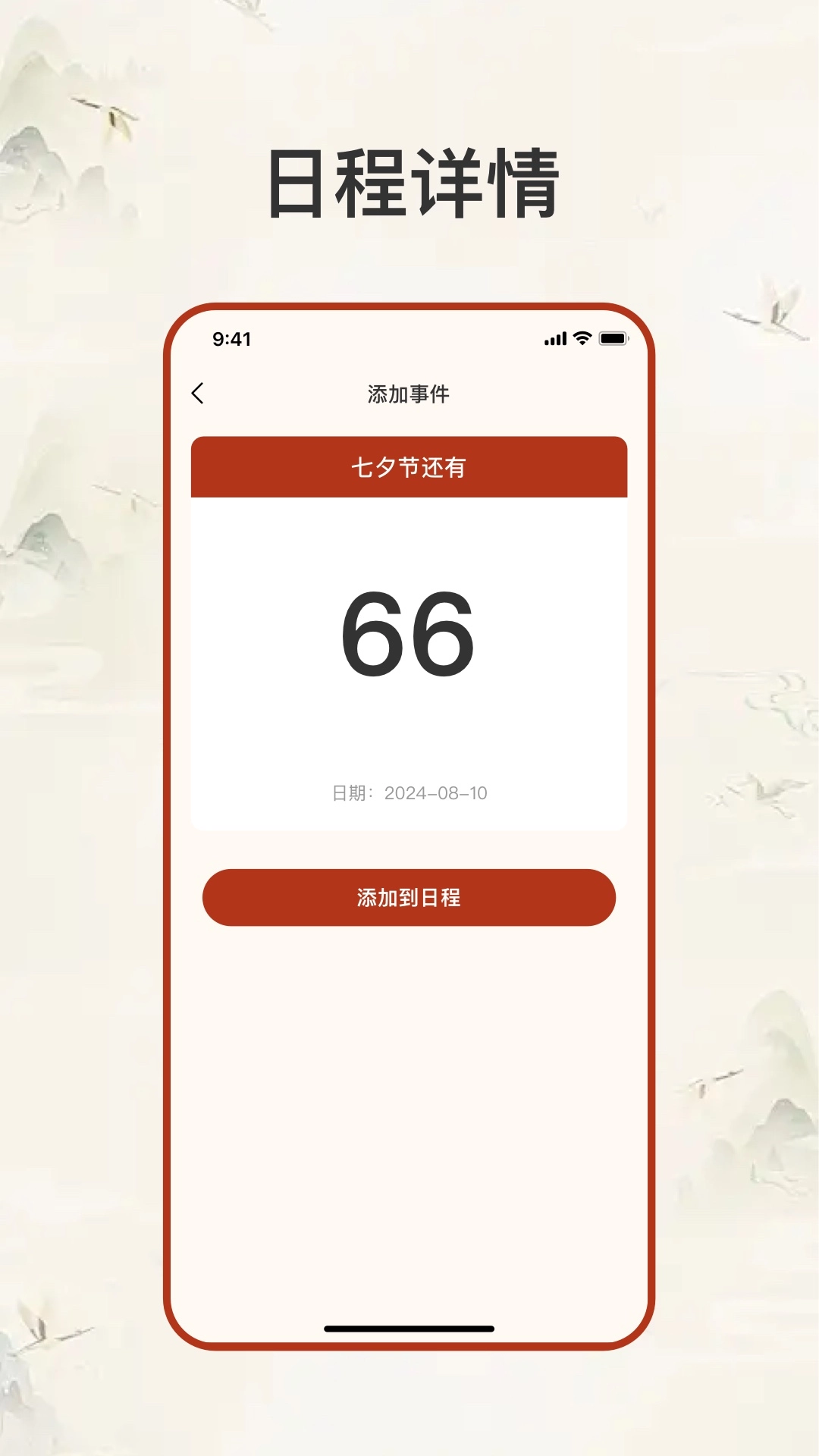 可自动实现日程倒计时,帮助用户实时知道距离日子的天数;