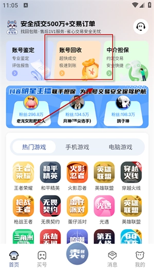 2、若要卖号,可点击账号回收,在线提交账号信息,参与竞价后即可完成交易。