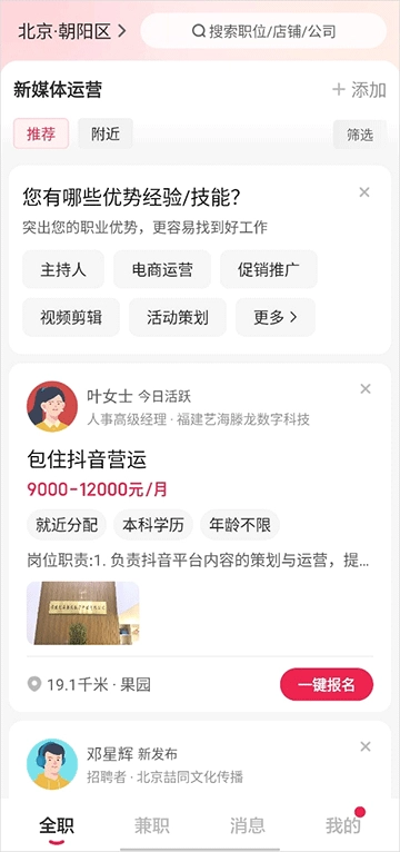 【速来】一键报名,即刻开启畅聊,无需出门,在线洞悉职位详情与求职者具体情况。