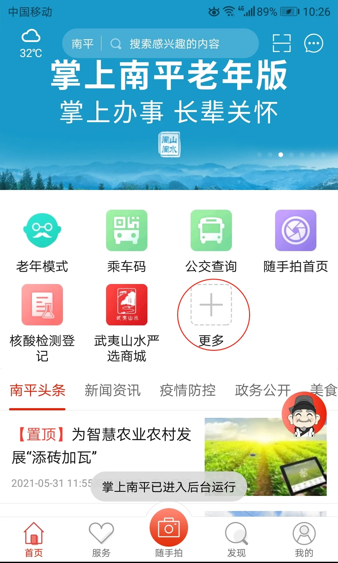 市民通过掌上南平,可随时掌握本地最新政策与新闻动态,还能够在线办理行政审批、社保查询、医保缴费、预约挂号、实时公交查询、水电煤缴费、旅游预约等各类高频服务。