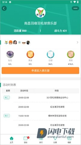 3、点击任意俱乐部,进入其详情页面,查看详细的活动安排表。