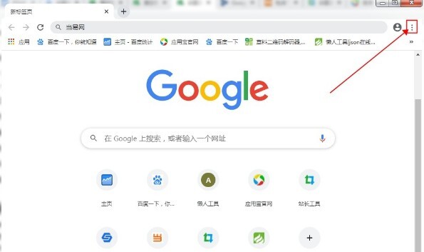 1.首先打开谷歌浏览器进去默认界面,点击主页面右上角的三个点的按钮,如图: