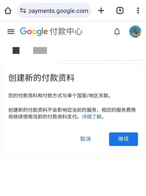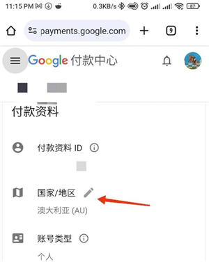 3. 点击国家/地区旁边的铅笔图标,然后是创建新的付款资料