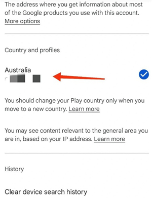 6. 接着回到Google Play,依次进入设置→通用→账号和设备偏好,之后选择国家(此操作可能需48小时后才会生效)