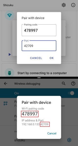 未 root 设备:遵照 Shizuku app 中的指引,通过 adb 启动服务。