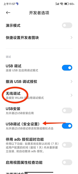 4.然后进入【开发者选项】-【无线调试】