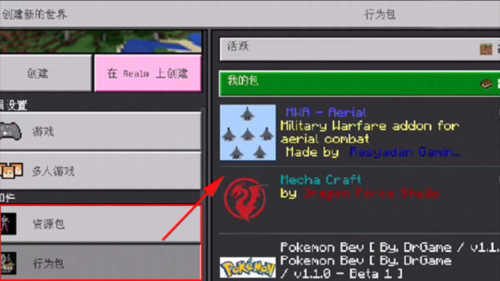 6、接下来返回游戏创建世界,在“资源包”中即可选择刚才下载到的mod模组了。