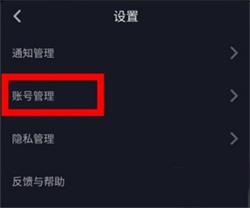 3、打开设置后,点击账号管理选项。