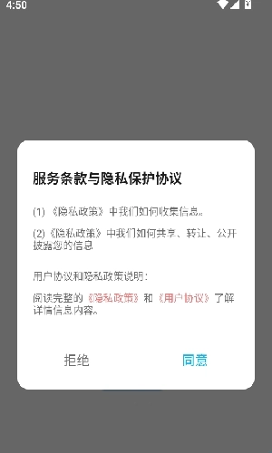 1、首先打开软件阅读协会和条款后,点击“同意”按钮进入。