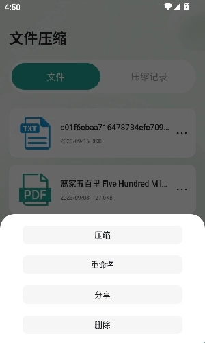 4、之后点击文件最右边的“三个点”按键后,点击“压缩”按键。