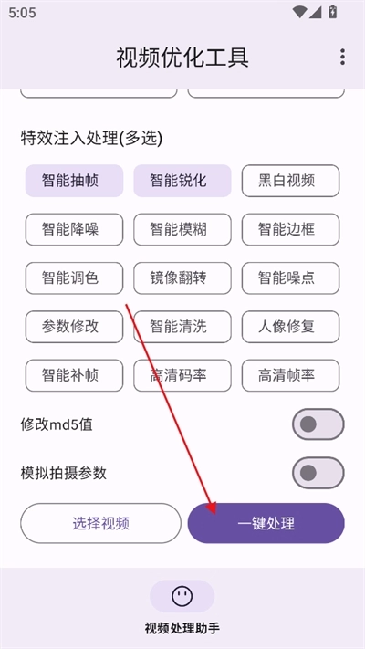 选择功能和视频点击一键处理即可