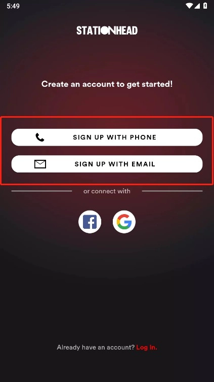 2、打开Stationhead,按照提示创建一个新的账户。您可以选择使用电子邮件地址或社交媒体账户进行注册。