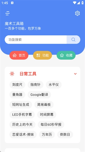 魔术工具箱,一款聚合海量手机实用工具的软件,涵盖系统工具、图片工具、计算工具、文字工具、视频工具等数百个超好用的手机工具。这里所有工具统统免费,绝弹窗干扰使用体验。感兴趣的朋友,快来本站一试吧!