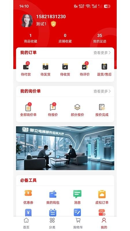 让用户可以在这里将各种电梯零部件进行优惠采购,可领取优惠券采购各种商品。