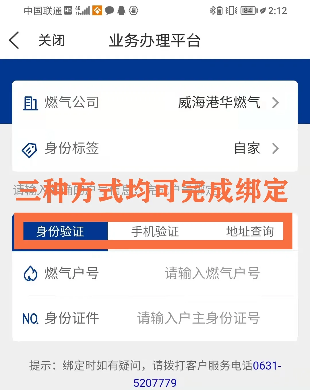 4.绑定燃气账号——完成户号绑定(共有三种方式,选择其一即可)——去预存