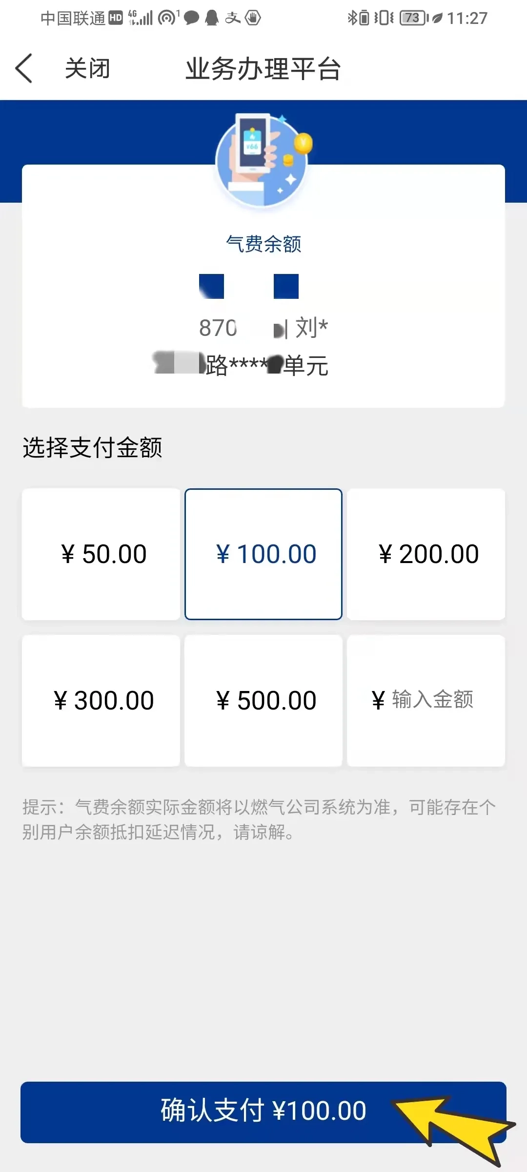 ps:部分用户无法通过线上支付缴纳燃气费,需在预存后按照页面提示进行操作,到附近缴费机器上完成充值。