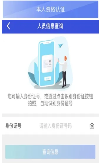第三步:在输入框中录入身份证或点击“照相机”上传身份证图片后点击“查看信息”。