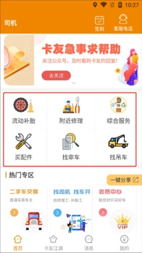 大卡车师傅交易二手车找补胎商户的平台,还支持二手车交易服务,功能齐全