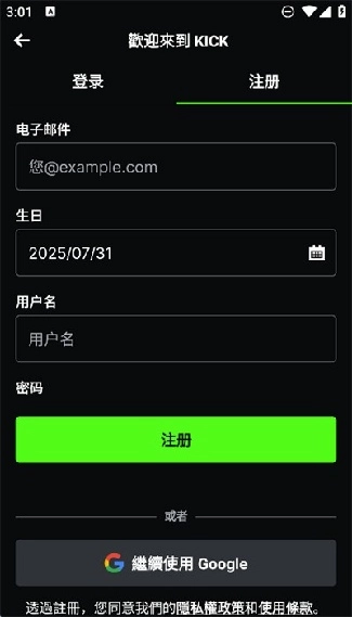 kick直播如何进行注册登录