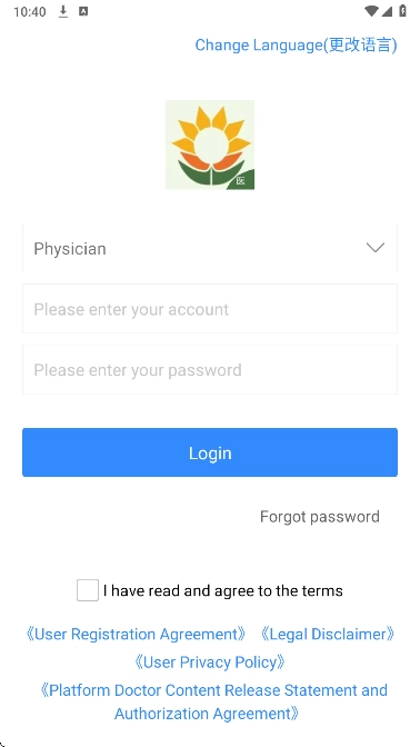 2、进入可以看到很多医生的办公功能,可以自由选择语言使用。