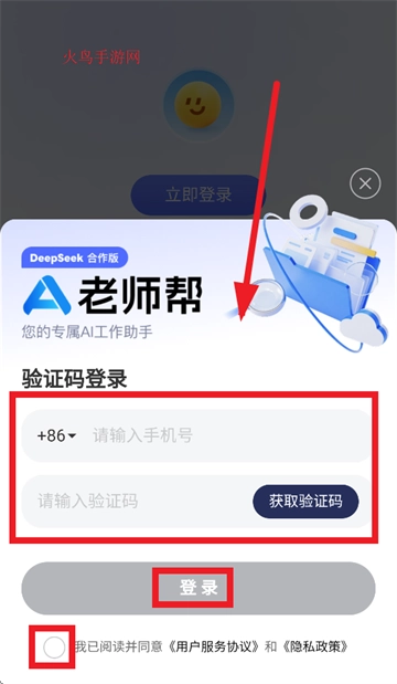 安装并打开老师帮,在用户协议及隐私政策点击同意并继续