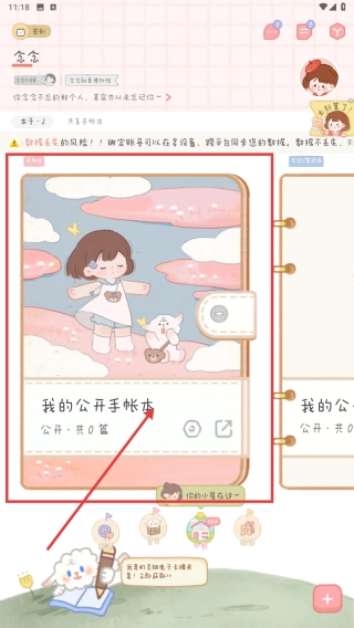 1. 打开金金界面,找到“我的公开手帐本”入口并点击,进入手帐本管理页面后,再点击“查看账本”。
