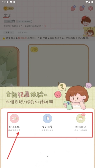 3、弹出功能选择框,点击制作手帐选项,选用模板开始手帐内容创作,点击来制作手账。