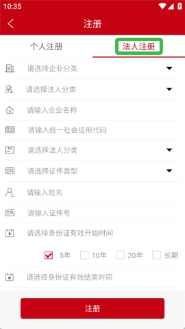 4、点击【法人注册】,这一步可别马虎,确保信息填写准确。