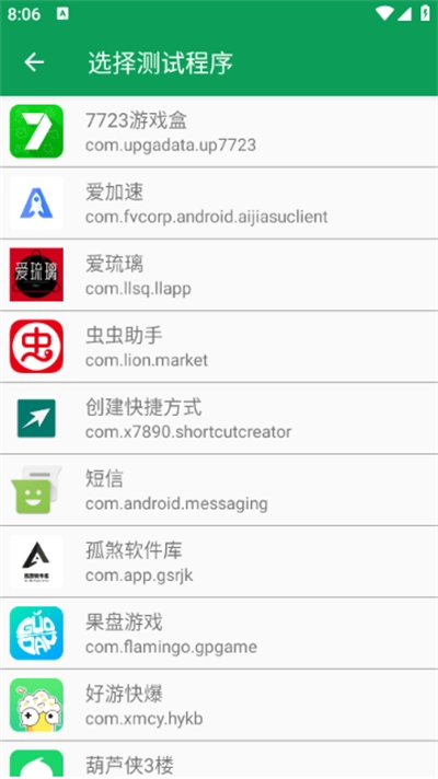 2、接着,选取你想要进行测试的应用程序或游戏。