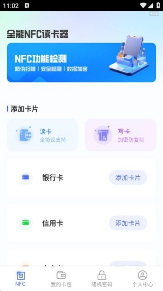 2、提供设备NFC功能检测服务,帮助用户确认手机是否具备使用该软件的硬件条件。