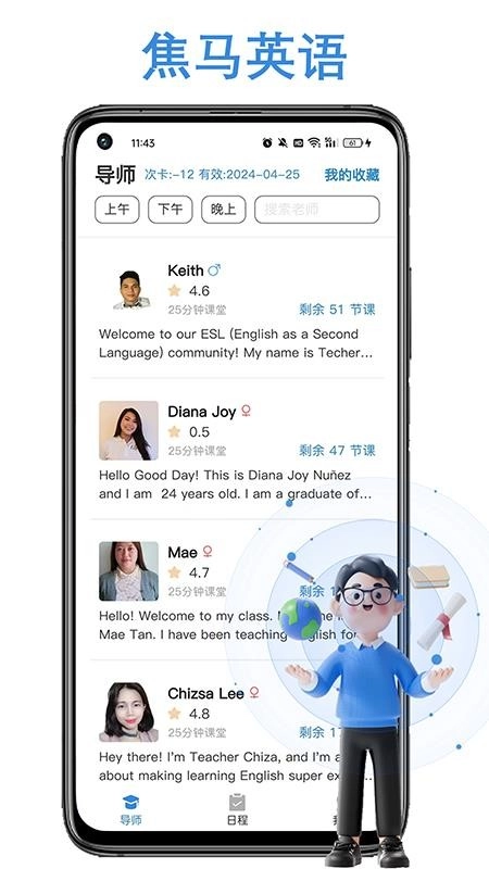 详细的外教导师信息,可全面知道教学经验、资格证书、介绍和评价,便于选择学习;