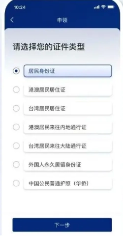 2、选择你想申请的证件类型,之后就像开启了一扇新世界的大门。