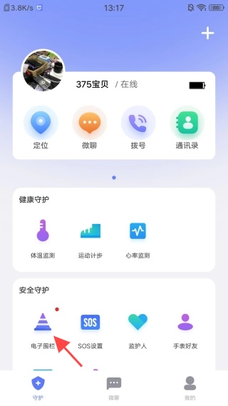 3、进入【守护】界面,点击【电子围栏】图标。