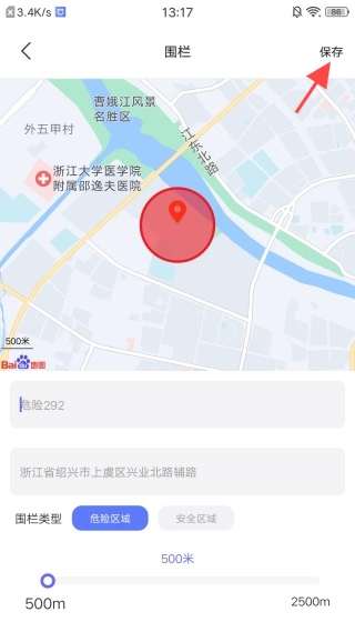 4、输入相关内容,设置围栏类型,保存即可。