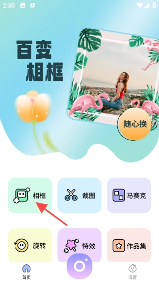 2、进入首页,点击【相框】图标。