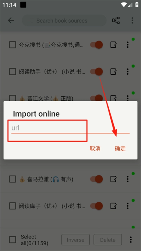 4、这里选择Import online,输入书源地址即可快速导入