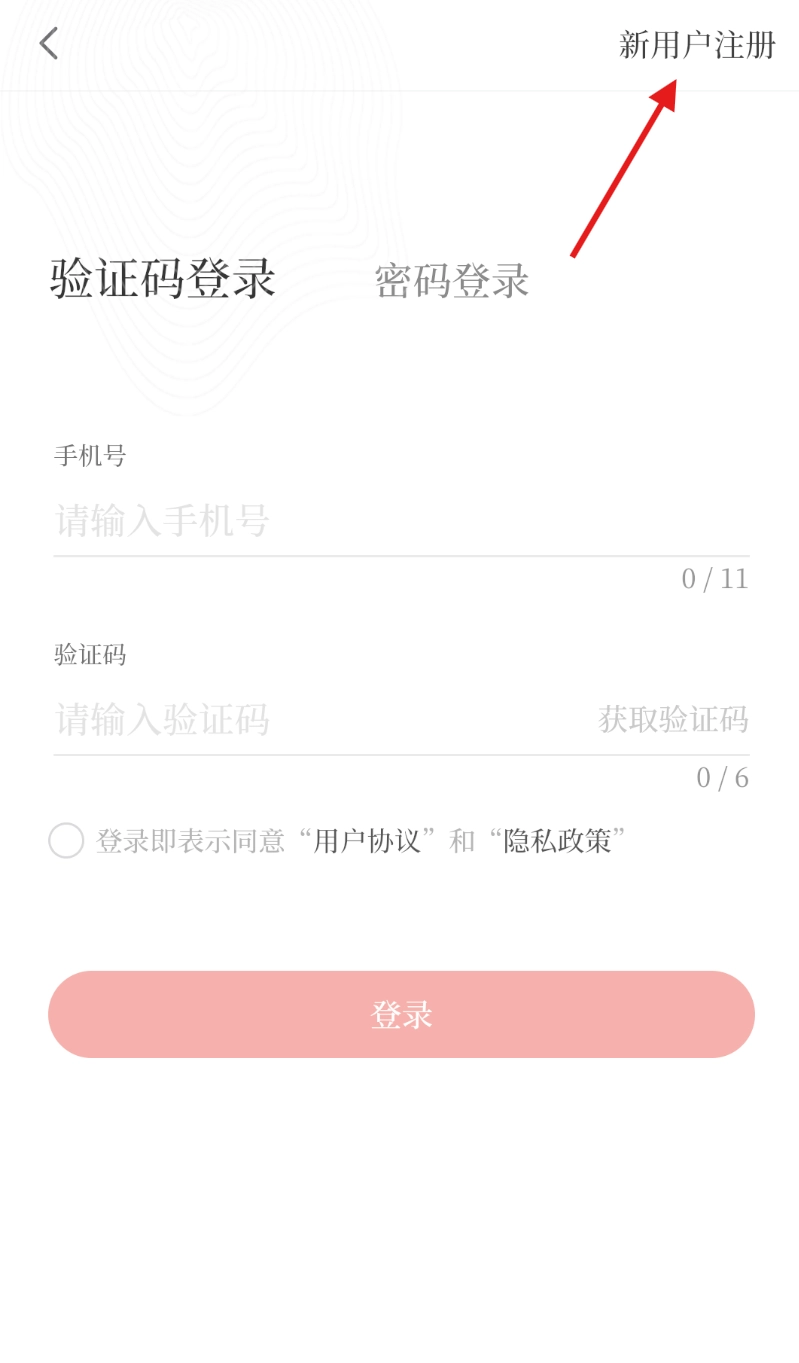 3、在账号操作界面中,点击右上方的 “新用户注册” 按钮,跳转至注册页面。