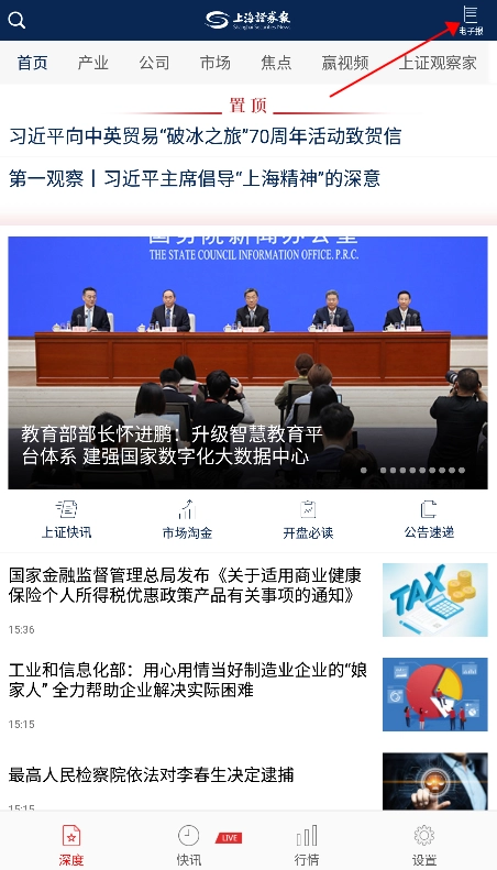 5、点击右上角的电子报,可以查看今天最新的电子日报。