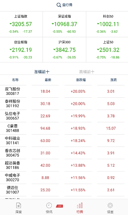 1、打开好的,可以看到软件有深度、快讯、行情、设置四大版块。