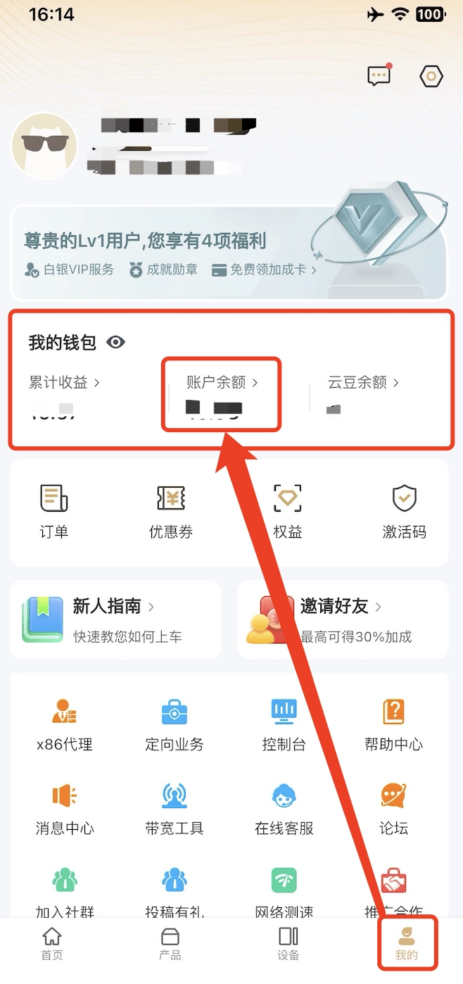 提现方式:您可在“网心云App"登录绑定的账号。在【我的】-【我的钱宝】-【账户余额】中提取设备产生的收益