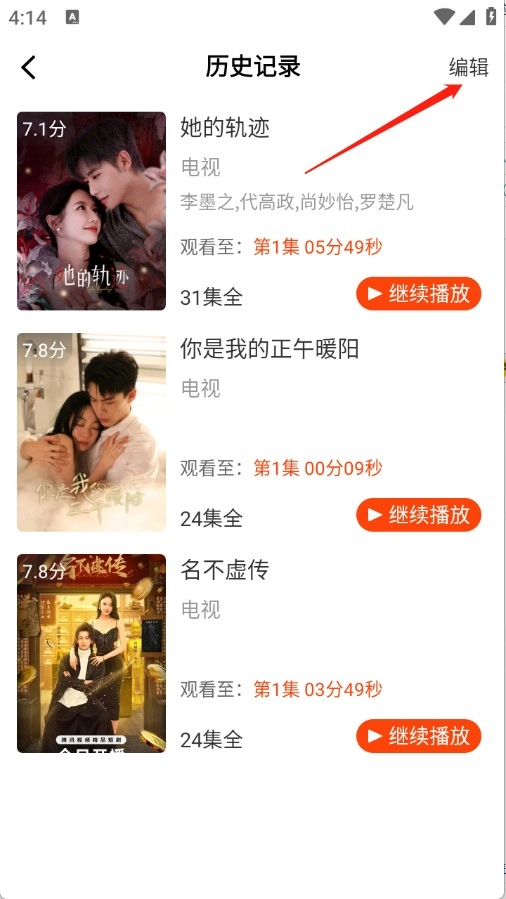 2、点击右上角的“编辑”