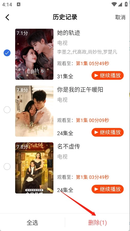 3、选择要删除的影视即可