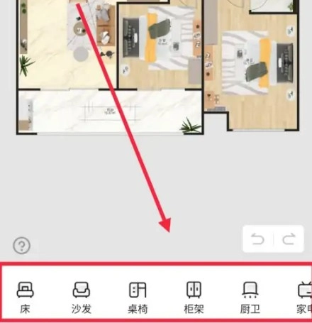 4、在DIY家装界面内,就可以根据设计需求,在下方选择对应家装工具,进行DIY设计。