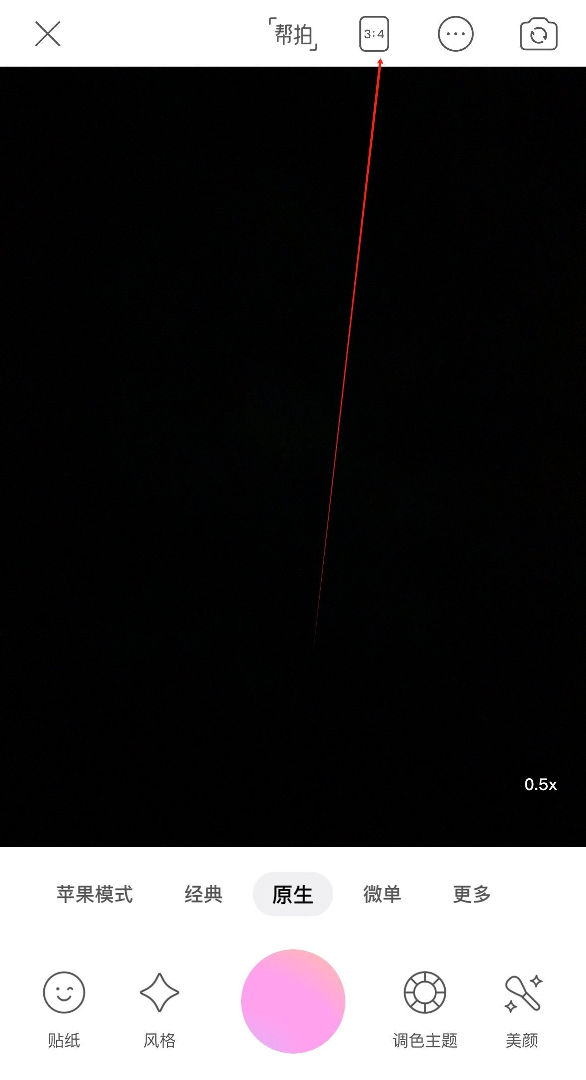 2、在拍照的模式的右上角有个省略号圆圈的图标,点击进去;