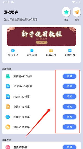 3、然后根据手机性能选择开启对应的120帧,要是手机卡的话选择流畅+120帧;