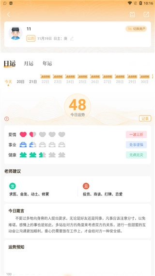 5、日运,月运,年运都可以进行查看。
