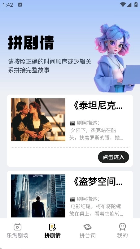 2、拼剧情页面可以按正确的时间顺序,接出完整的故事