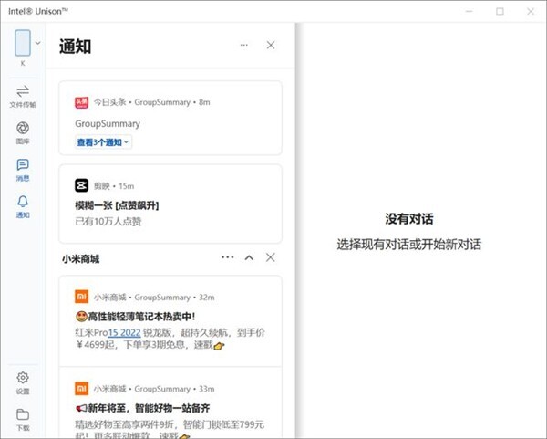 6、除了前面提到的这些传统功能外,Intel Unison 的通知功能才是真正实现电脑与手机协同的关键所在。无论是系统通知还是第三方应用通知,都能实时同步并推送到电脑端,即便一整天不查看手机,也不会产生信息遗漏的焦虑感。若想使用该功能,记得要在手机的蓝牙设置里开启通知权限以及共享系统通知的选项。