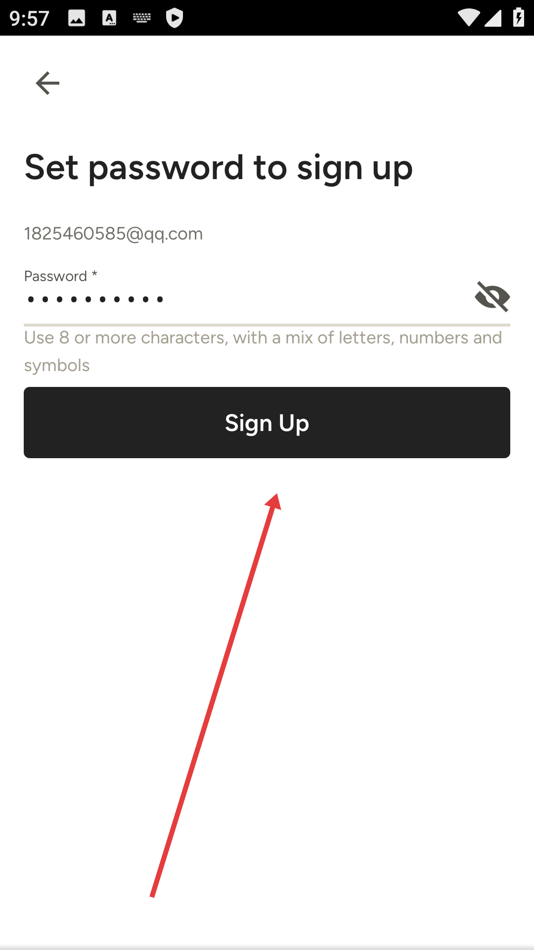 3、在密码设置界面设置密码后,点击【Sign-Up】,进入自我介绍界面。